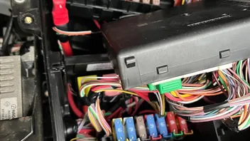 • Schwarzer Sicherungskasten direkt an der Batterie