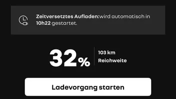 Wenn ich aber auf die Hauptseite der App gehe, steht dort, dass das zeitversetzte Aufladen in X Stunden gestartet wird. Hochgerechnet entspricht das exakt der Uhrzeit, die ich vorher als „Fertig um 6 Uhr“ eingegeben habe.